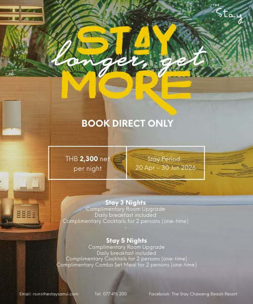 Make the most of your island escape at The Stay Chaweng Beach Resort with exclusive long-stay privileges and added value throughout your stay.